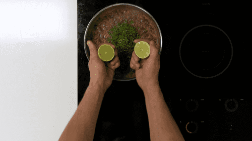Снять фасоль с огня, посолить, добавить рубленую кинзу и сок лайма.