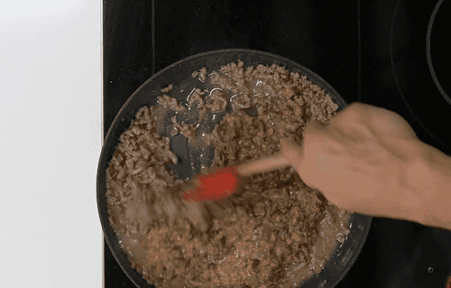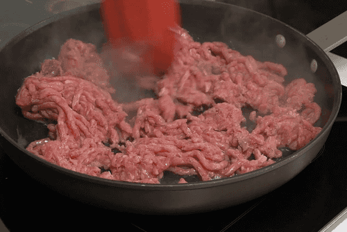 На чистой сковороде разогреть масло и обжарить фарш в течение 5 минут