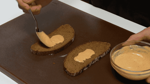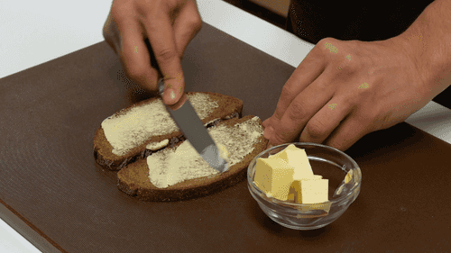 Каждый ломтик хлеба смазать сливочным маслом с одной стороны.