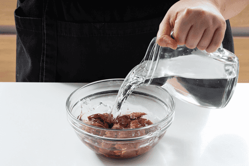 Приготовить паштет из печени. У печени удалить сосуды и прожилки, залить ее водой и оставить на 15 минут.
