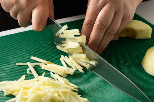 Остальное яблоко очистить от кожуры и нарезать соломкой.