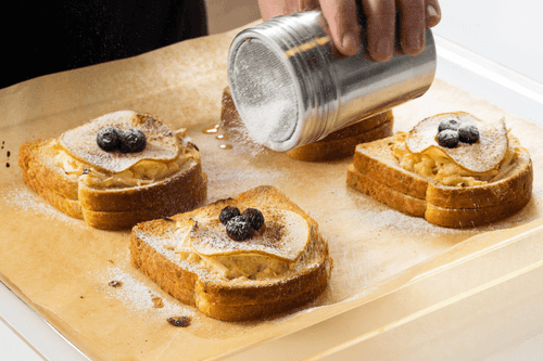 Отправить в разогретую духовку на 15 минут. Достать и присыпать через сито сахарной пудрой.