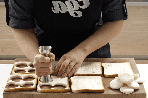 Из хлеба при помощи рюмки вырезать круги.