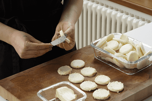 Обмазать боковины кругов сливочным маслом.