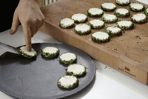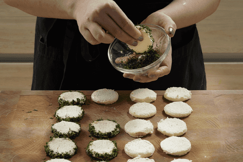 Обвалять боковины кругов в укропе.