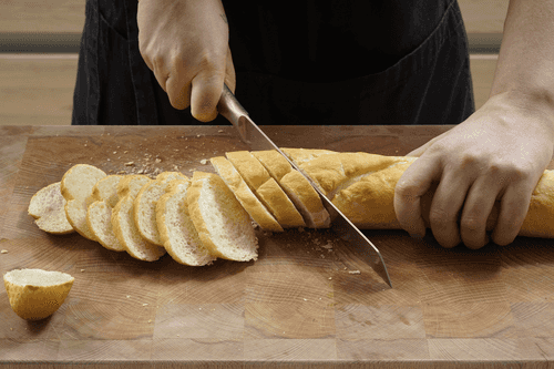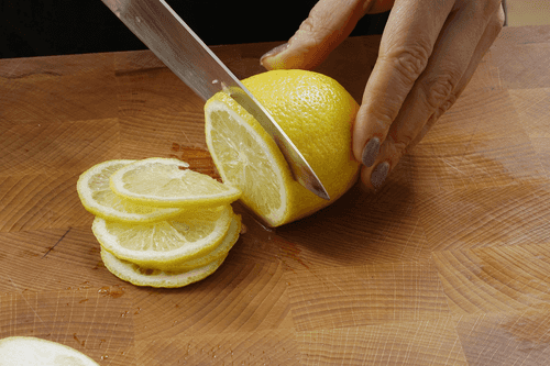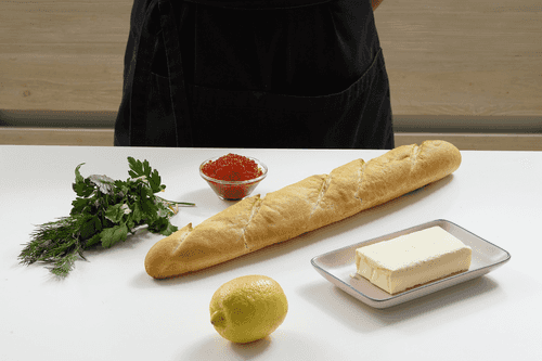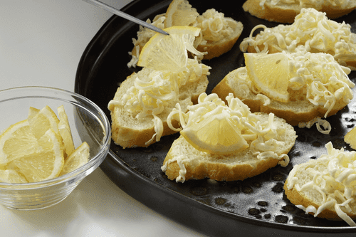 Выложить на каждый ломтик багета 1/4 дольки лимона.