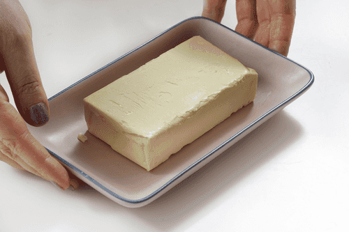 Масло убрать в морозилку, чтобы оно хорошо затвердело.