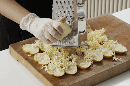 На каждый ломтик хлеба натереть замерзшее масло, чтобы оно легло вихрами.