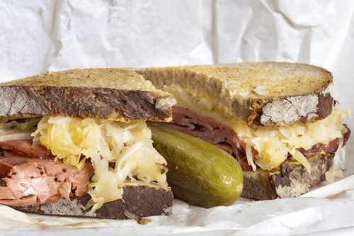 Лосось на ржаном хлебе с квашеной капустой и хреном