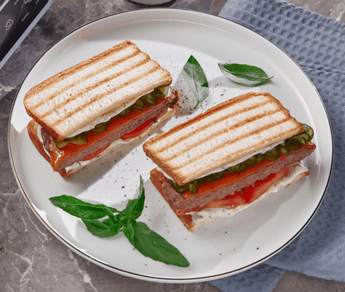 Сэндвич гриль с котлетой и соусом ранч — это гастрономическое удовольствие, которое сочетает насыщенный вкус мраморной говядины с нежностью растопленного чеддера и свежестью овощей. Соус ранч, приготовленный на основе майонеза, сметаны и ароматных специй, придает блюду кремовую текстуру и пикантность. Истоки этого сэндвича уходят в американскую кухню, где гриль стал неотъемлемой частью приготовления вкусных и сытных блюд. Этот сэндвич идеален для быстрого, но изысканного перекуса: хрустящие ломтики хлеба, пропитанные соусом, обрамляют сочную котлету и создают гармоничный баланс вкусов. Лучше всего подавать его горячим, сразу после приготовления, чтобы насладиться его полной палитрой ароматов.