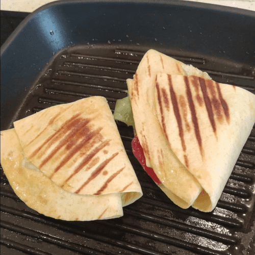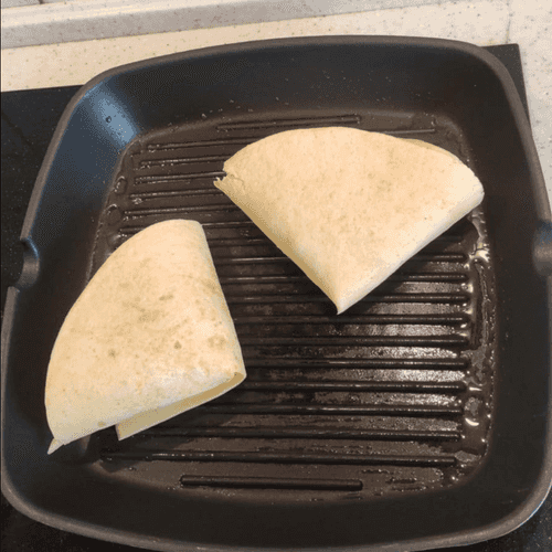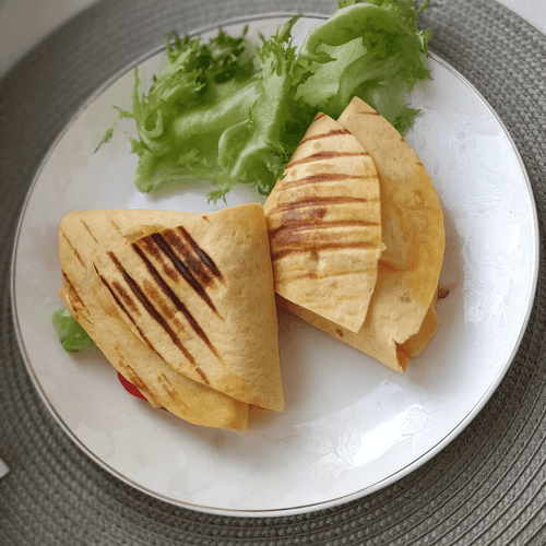 Тортилью обжарить с двух сторон до расплавления сыра.