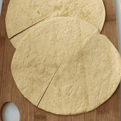 Свернуть лепешку в сэндвич по часовой стрелке. Получится многослойный треугольник.