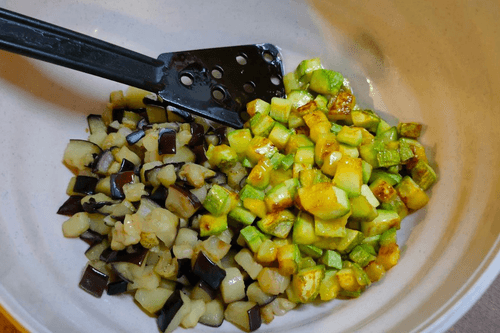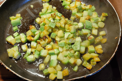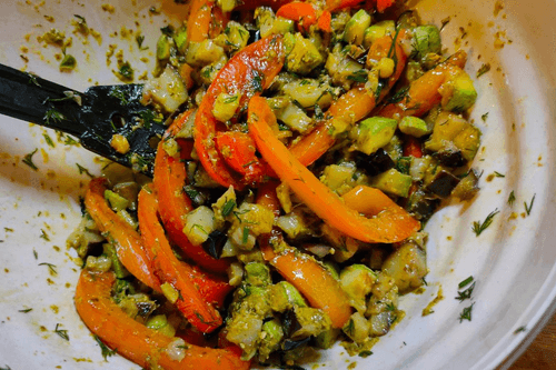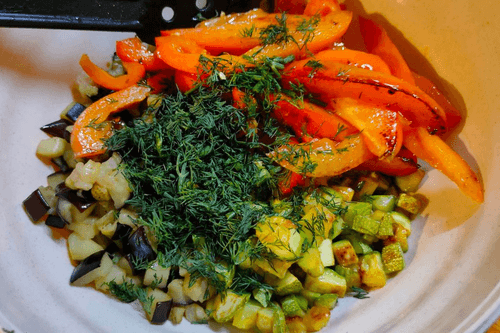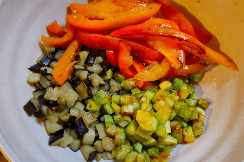 Так же, как и баклажан с кабачком, обжарить перец на растительном масле, посолить по вкусу.