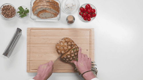 Из ананаса вырезать колечко толщиной 1–2 см и срезать с него кожуру.