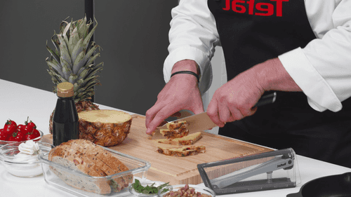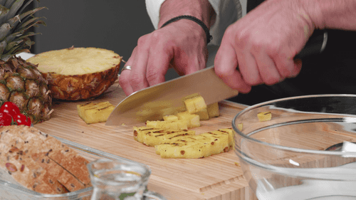 Нарезать жареный ананас небольшими кубиками, убрав сердцевину.