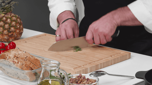 Несколько листьев базилика сложить друг на друга, скрутить их в трубочку и нарезать тонкой соломкой.