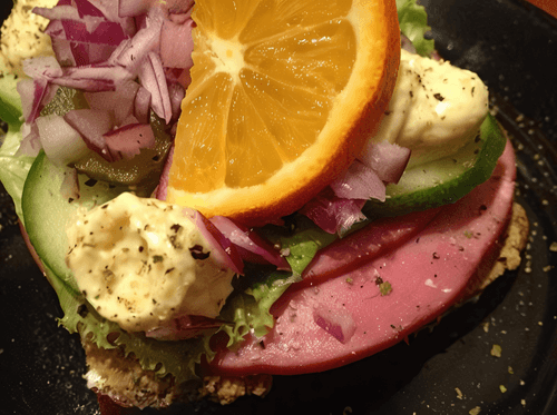 Датский открытый сэндвич с паштетом и салями — истинное произведение датской кулинарии, отражающее традиции смёрребрёда. Этот сэндвич — изысканное сочетание ржаного хлеба, нежного печеночного паштета и пикантной салями, которое дополняется соусом ремулад, хрустящим жареным луком и освежающим маринованным огурцом. Завершающий штрих — изящная долька апельсина, придающая блюду тонкую фруктовую кислинку. Сэндвич не только радует вкусом, но и поражает визуальным совершенством, ведь смёрребрёды в Дании часто подаются как гастрономическое искусство. Это идеальный вариант для легкого обеда или праздничной закуски, когда хочется испытать настоящие датские вкусовые нюансы.