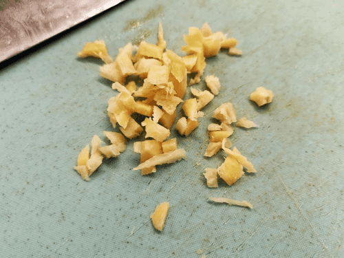 Имбирь мелко нарезать.