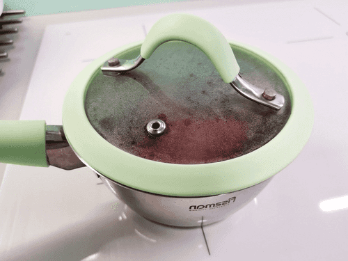 После закипания добавить мед и убавить огонь.
