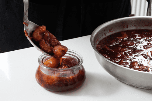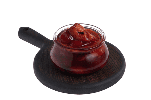 Чатни из слив — это восхитительная приправа британской кухни, которая сочетает сладость спелых слив, аромат специй и легкую кислинку апельсинового сока. История чатни уходит корнями в индийскую кухню, но британцы адаптировали его, создавая фруктовые вариации. Медленно карамелизованный лук-шалот, корица, гвоздика и душистый перец придают чатни глубокий вкус с теплыми, пряными нотками, а сидр добавляет утонченную фруктовую свежесть. Это густая, насыщенная приправа прекрасно сочетается с сырами, мясными блюдами и тостами, раскрываясь еще лучше спустя несколько недель выдержки. Чатни из слив — это настоящее гастрономическое наслаждение, объединяющее традиции и новаторство в каждой ложке.
