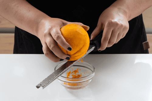 Выдавить из апельсина сок, вылить его в мерный стакан и долить сидром до объема 450 мл.