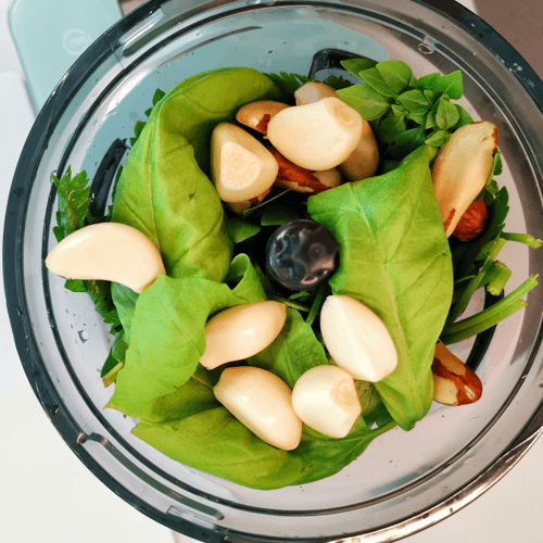 Очистить чеснок и отправить его к остальным ингредиентам.