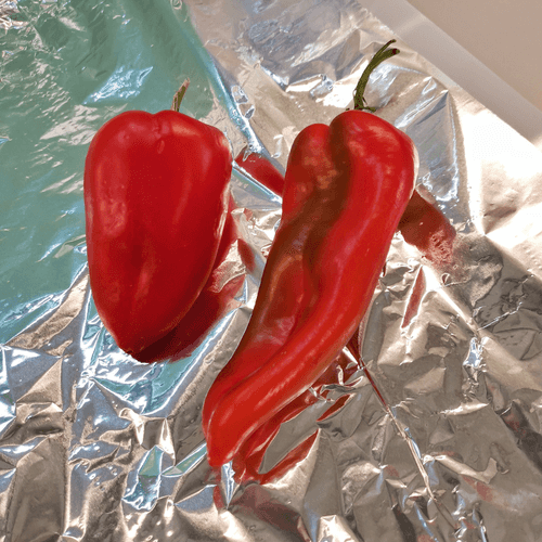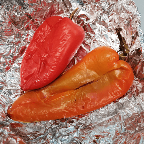 Перец обернуть в фольгу глянцевой стороной внутрь.