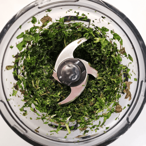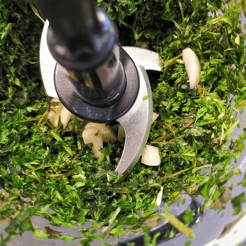 В блендер отправить зелень.