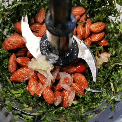 Соус песто с печеным перцем – это уникальное сочетание итальянской традиции и авторского подхода к вкусу. В его основе — классический песто, но с яркими нотами сладкого печеного перца, пикантностью чеснока и ореховым оттенком миндаля и фисташек. Лимонный сок и винный уксус придают легкую кислинку, а смесь перцев добавляет пикантность. Этот соус идеально подходит к пасте, мясу, рыбе или как дип к свежему хлебу. Его насыщенный вкус делает каждое блюдо более выразительным и запоминающимся. Используйте его для создания гастрономических шедевров, и он подарит неповторимую глубину вкуса вашим кулинарным экспериментам.