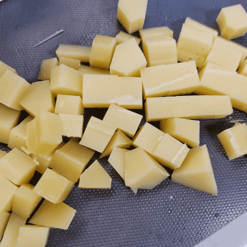 Сыр нарезать кубиками.