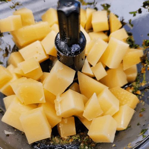 Отправить сыр в блендер.