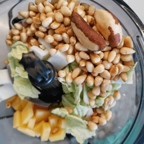 Орехи, сыр и капусту добавить в блендер.