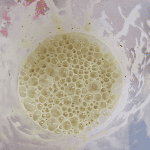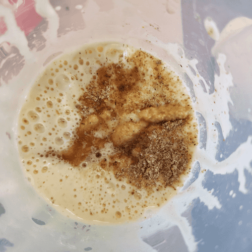 Взбить погружным блендером в течение нескольких секунд, затем добавить специи, уксус и горчицу.