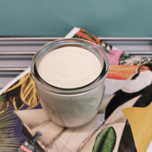 Полученный майонез переложить в емкость для хранения.