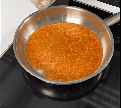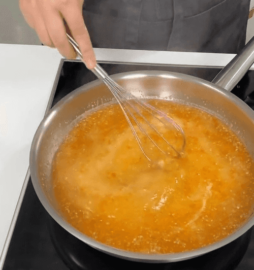 Продолжить готовить на среднем огне, постоянно помешивая соус венчиком.