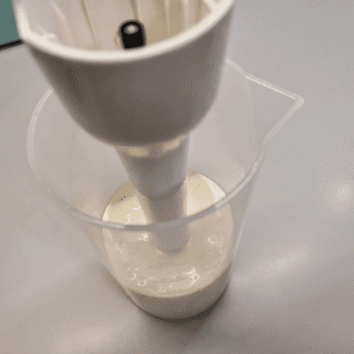 Затем взбивать до однородной консистенции, двигая блендер вверх-вниз.