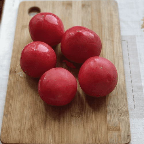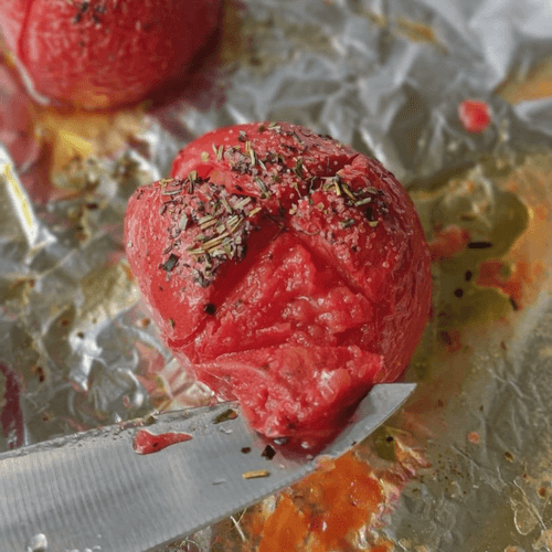 Запеченные томаты достать из духовки и дать им немного остыть.