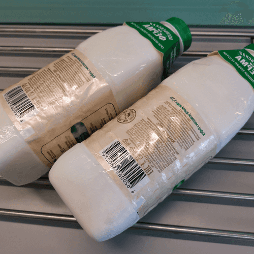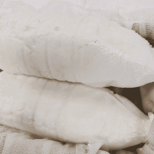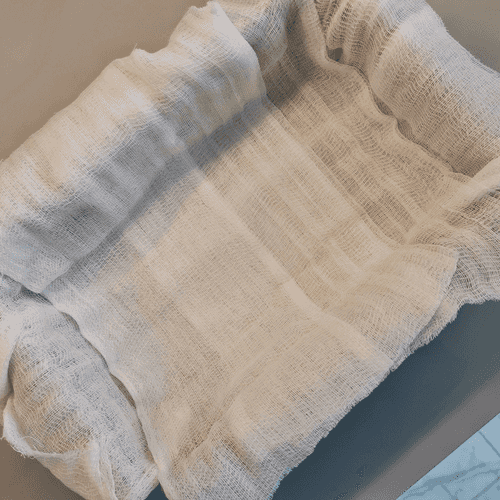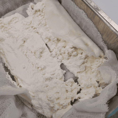 Разрезать бутылку, изъять замороженный кефир и переложить его на марлю.