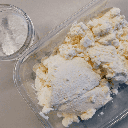Кефир заморозить. Затем достать из морозильной камеры и дать слегка разморозиться в течение 15 минут.