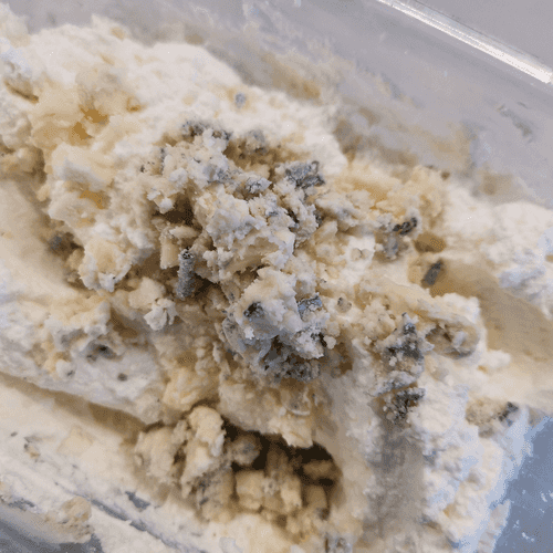 Крем-сыр с голубой плесенью – это изысканное блюдо авторской кухни, сочетающее пикантность благородной плесени с нежной текстурой ферментированного кефира. Этот рецепт вдохновлён древними техниками создания сыров, когда молочные продукты подвергались естественной ферментации. Вкус получается насыщенным, сливочным и с утончёнными грибными нотками, присущими голубому сыру. Отличный вариант для подачи с хрустящими тостами, свежими фруктами или даже как соус к мясным блюдам. Крем-сыр можно использовать в гастрономических экспериментах, добавляя его в пасту, соусы или как основу для канапе. Его изысканность подчёркивается морской солью и зеленью, создавая гармоничный баланс вкусовых оттенков.