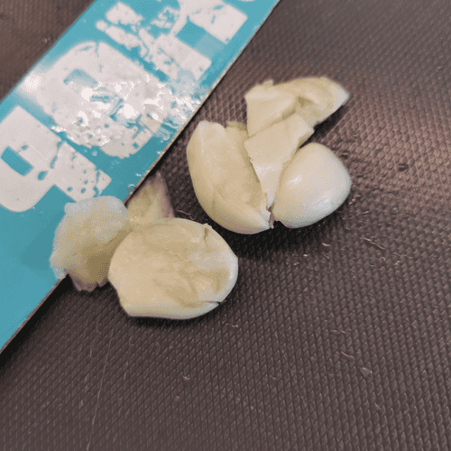 Чеснок раздавить поварским ножом.