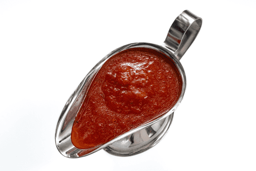 Протереть соус машинкой для пюре или пропустить через мясорубку. Ни в коем случае нельзя это делать блендером.