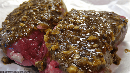 Руками намазать мясо и оставить на 2 часа–всю ночь.