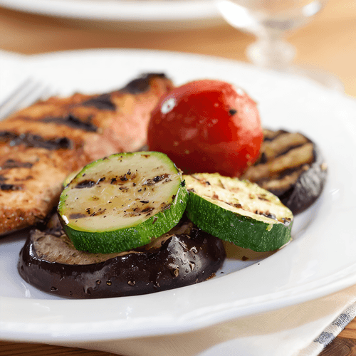 Смажьте овощи маринадом перед жаркой и жарьте, периодически смазывая оставшимся маринадом.