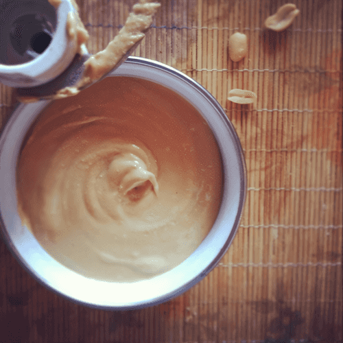В кухонном комбайне измельчить арахис на средней-высокой скорости около 5 минут, позволив орехам пройти субстанции «крошка» - «песок» - «гигантские комки» - «гладкая масса».