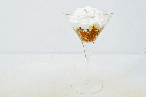 В завершение заполнить бокалы воздушным кремом из моцареллы и сливок с помощью сифона. Для аромата побрызгать оливковым маслом — совсем немного, по четверти чайной ложки на порцию. И немедленно подавать.