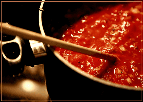 В сковороде раскалить оливковое масло, подрумянить чеснок, затем его удалить. Это делается для того, чтобы придать соусу аромат.