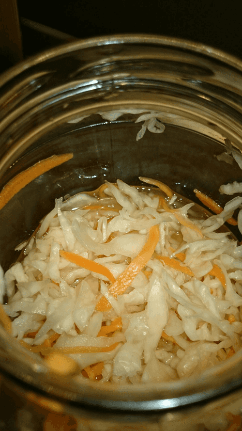 Переложить в стеклянную тару и залить получившимся рассолом, хранить в холодильнике