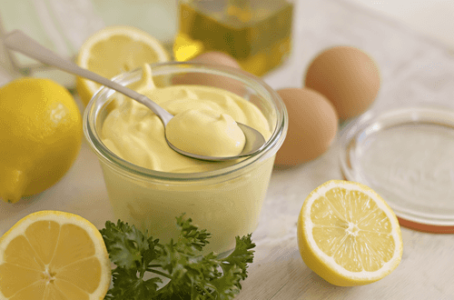 Когда все растительное масло будет введено и майонез станет густым, вмешайте лимонный сок и приправьте по вкусу.
