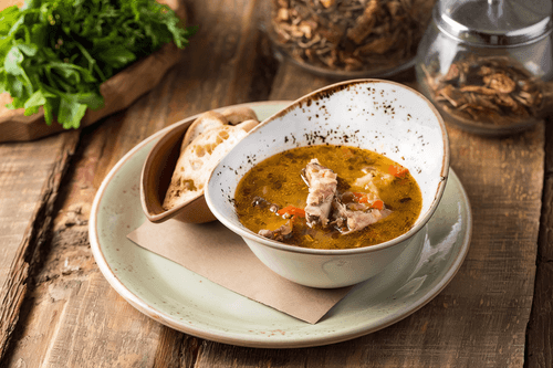Этот ароматный чечевичный суп с копченой телятиной является настоящим шедевром кулинарии, который привносит в каждый глоток тепло и уют. Создатель рецепта, шеф-повар ресторана «Ткемали» Заза Шенгелия, мастерски сочетает богатый вкус чечевицы с нежной копченой телятиной, создавая гармоничное блюдо, идеально подходящее для холодного времени года. Такой суп не только насыщен питательными веществами, но и способен поднять настроение, благодаря своей насыщенной текстуре и ароматам, которые напомнят о домашнем очаге и традициях грузинской кухни.